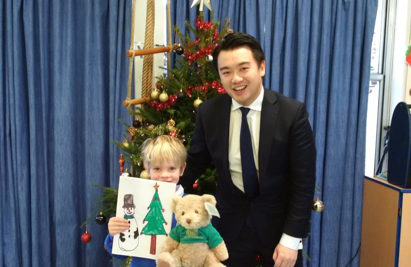 Alan Mak MP visited Austin at his school and presented him with his prizes during morning assembly on Friday 4th December. The prizes were a large House of Commons teddy bear, a family ticket to see Hansel and Gretal at the Spring Theatre in Havant, a certificate on House of Commons paper, and a full colour copy of the winning card.