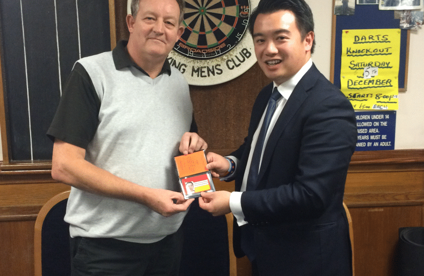Alan Mak MP said, “Leigh Park is a fantastic community, and the Working Men’s Club is very popular with residents. I’ve enjoyed spending time at the Club meeting members, entering the meat raffle, and holding my MP surgeries there. I’m delighted to become a full member, and look forward to supporting the Club in the future.”