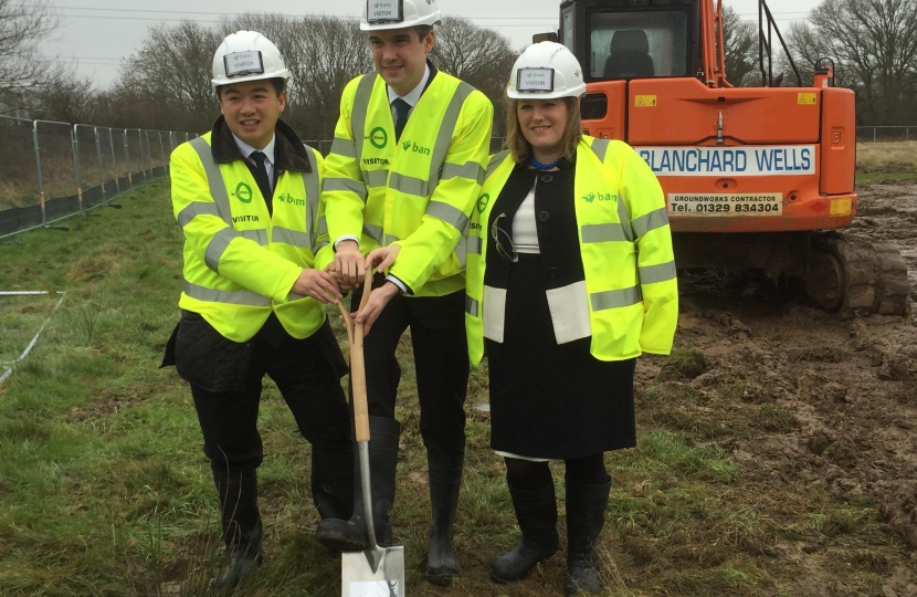- Alan Mak MP with Local Growth Minister James Wharton MP and Portsmouth City Council Leader Donna Jones at Dunsbury Hill Farm.