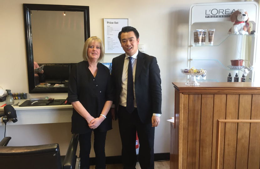Photo - Alan Mak MP meets Julie Parham, owner of the popular Purbrook salon