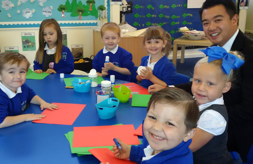 Photo: Alan Mak MP launches his Christmas card competition during an art classat Front Lawn Primary Academy, Leigh Park