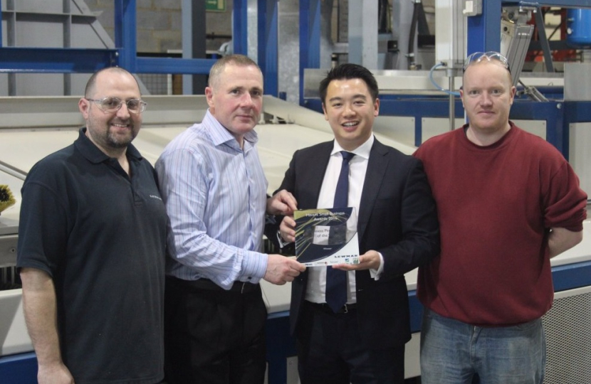 Photo – Alan Mak MP with staff at Lewmar with newly-produced trophies for the Small Business Awards