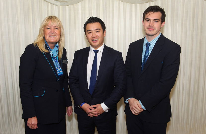 Alan Mak MP with a local Barclays apprentice, Jake Sexton and his mother.