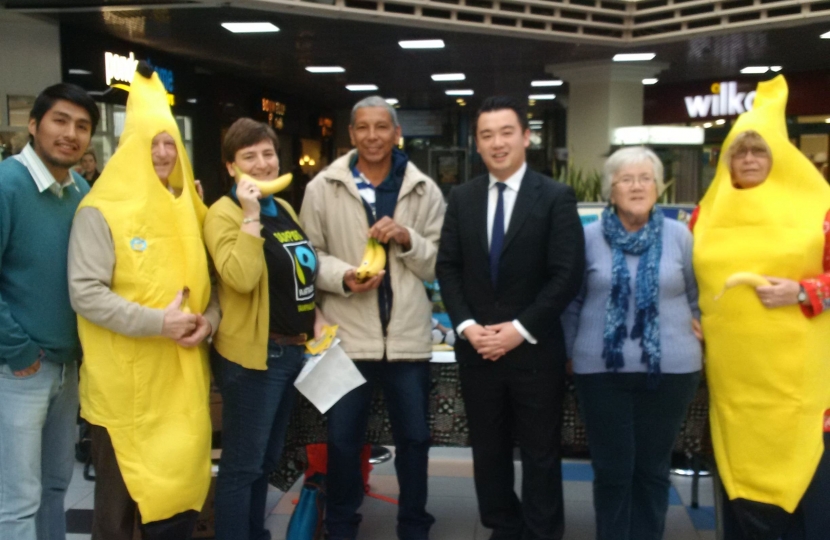 Havant MP Alan Mak has thrown his support behind Fairtrade Fortnight following his meeting with a Colombian banana farmer at the Meridian Centre. The two-week initiative, supported by the Portsmouth Fairtrade Forum, is running from 29th February until 12th March and will see numerous events in Havant and the surrounding area to promote the benefits of Fairtrade.